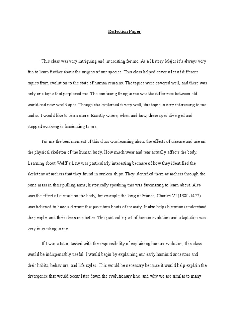 What is an example of reflection paper?