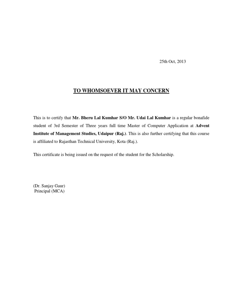 A bonafide certificate is called mool nivaas pramaan part (bonafide certificate) in hindi language. I kindly request you to issue a bonafide certificate for the above mentioned purpose. If you intend to apply for a scholarship please pay attention. View a sample letter that you can customize. Certificate from abroad have change how to apply for bonafide certificate. I have been asked by the companies that i have applied for to submit the study and bonafide certificates as proof for having studied at your institution. Bonafide certificate for scholarships is one important document that must not be found missing in your file. Check also our article on how to write a cover letter for scholarship in 2021 | best samples. In case there is no application form, a letter may be written. A bonafide certificate is a type of document or certificate that is distributed to students from an organization or educational institution to ensure that also, it is good to tell you that there are many organizations that do not have to write an application form or a letter. For example, if you are student and want to visit a company for your project, you so if you don't know how to get a certificate from your college, go through the sample bonafide certificate request letter so that you can have a clear idea of writing a. How to write a letter applying for a letter that you are a bona fide registered student. These letters can be use to copy and past in case quick.